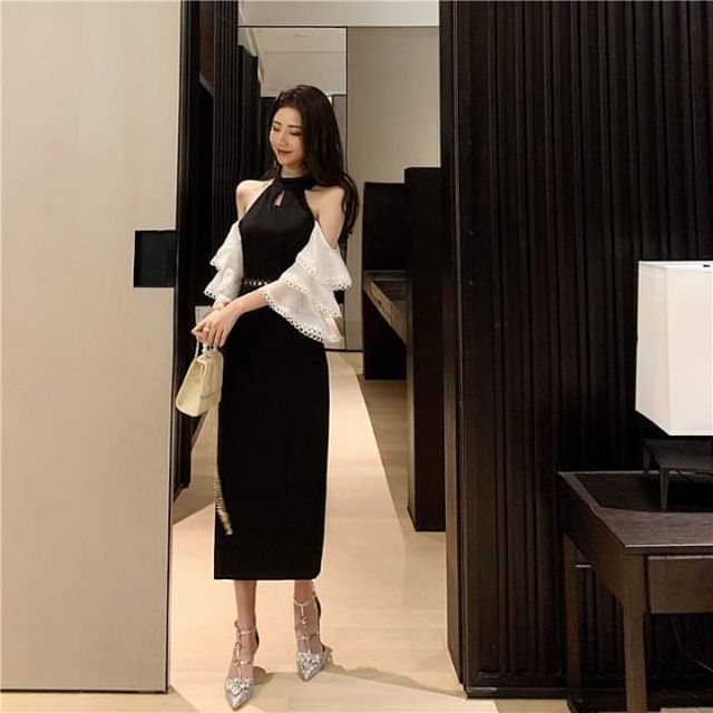 – Mô tả: Chiếc váy mang gam màu đồng đất cực hiếm độc đáo khiến bạn nổi bật và ấn tượng. Điểm nhấn là các đường uốn lượn tạo hình ở cánh tay và đường lượn gấu váy tạo nên một sự mềm mại, nữ tính của quý cô..
