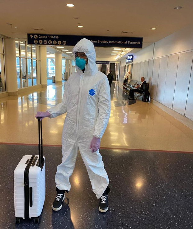 Naomi Campbell gây chú ý trong cộng đồng mạng khi diện đồ bảo hộ, khẩu trang cùng găng tay chuyên dụng của bác sĩ đến sân bay.